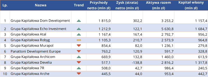 Zdecydowana większość firm z przygotowanego zestawienia specjalizuje się w sektorze mieszkaniowym, ale znalazły się w nim również spółki realizujące inwestycje biurowe, handlowe, magazynowe, jak i hotelarskie.