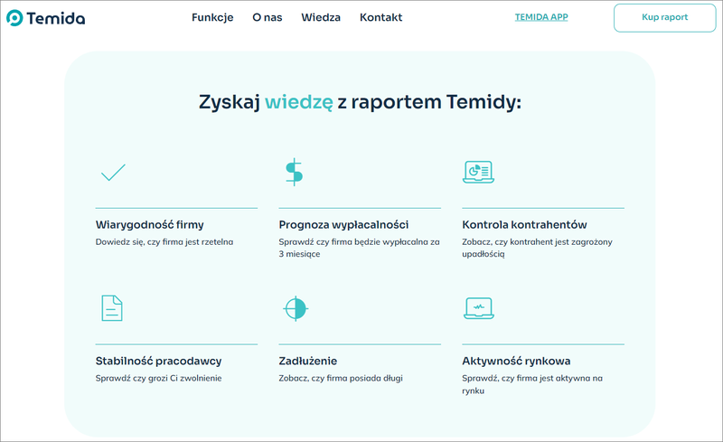 Temida przekonuje też, że jest w stanie przewidzieć, czy danej firmie grozi upadłość w najbliższym czasie.