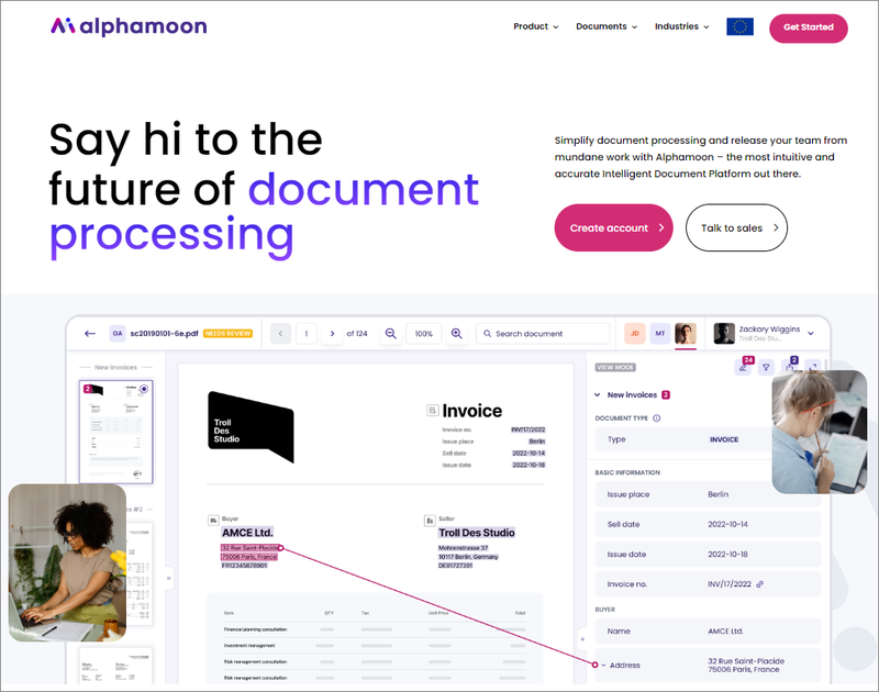 Pomoc w tej kwestii oferuje firma Alphamoon. Wykorzystuje ona sztuczną inteligencję do digitalizacji papierowych dokumentów i odczytywania umieszczonych na nich informacji. Co istotne, dotyczy to nie tylko tekstu, ale też tabel. Sztuczna inteligencja zajmuje się też odpowiednim sortowaniem dokumentów (na podstawie ich wyglądu jest w stanie stwierdzić, z jakim typem dokumentu ma do czynienia), a także umożliwia ukrywanie danych wrażliwych.