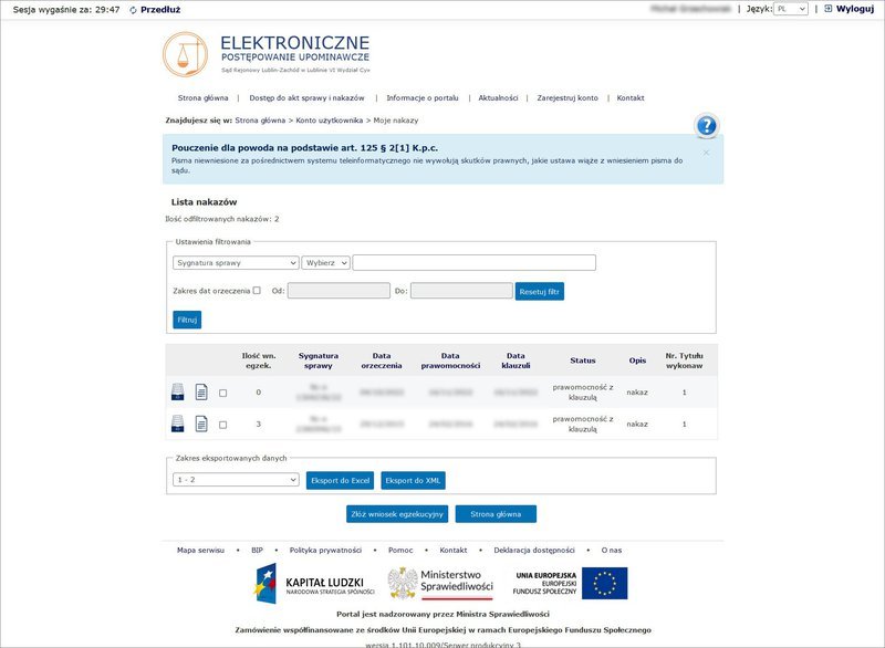 Aby złożyć wniosek o egzekucję należności, e-sąd musi wydać dłużnikowi nakaz zapłaty z klauzulą natychmiastowej wykonalności. Jeśli dłużnik nie złoży sprzeciwu w ciągu 14 dni od otrzymania polecenia zapłaty (gdy to zrobi, sprawa trafia do tradycyjnego sądu), można przystąpić do złożenia wniosku egzekucyjnego.