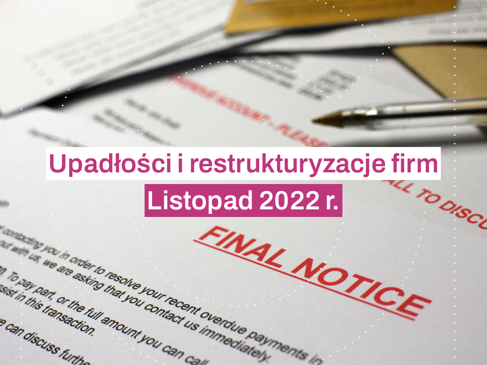 W listopadzie 2022 roku sądy podjęły decyzję o rozpoczęciu restrukturyzacji w 299 firmach i przyjęły 168 wniosków o rozpoczęcie restrukturyzacji.