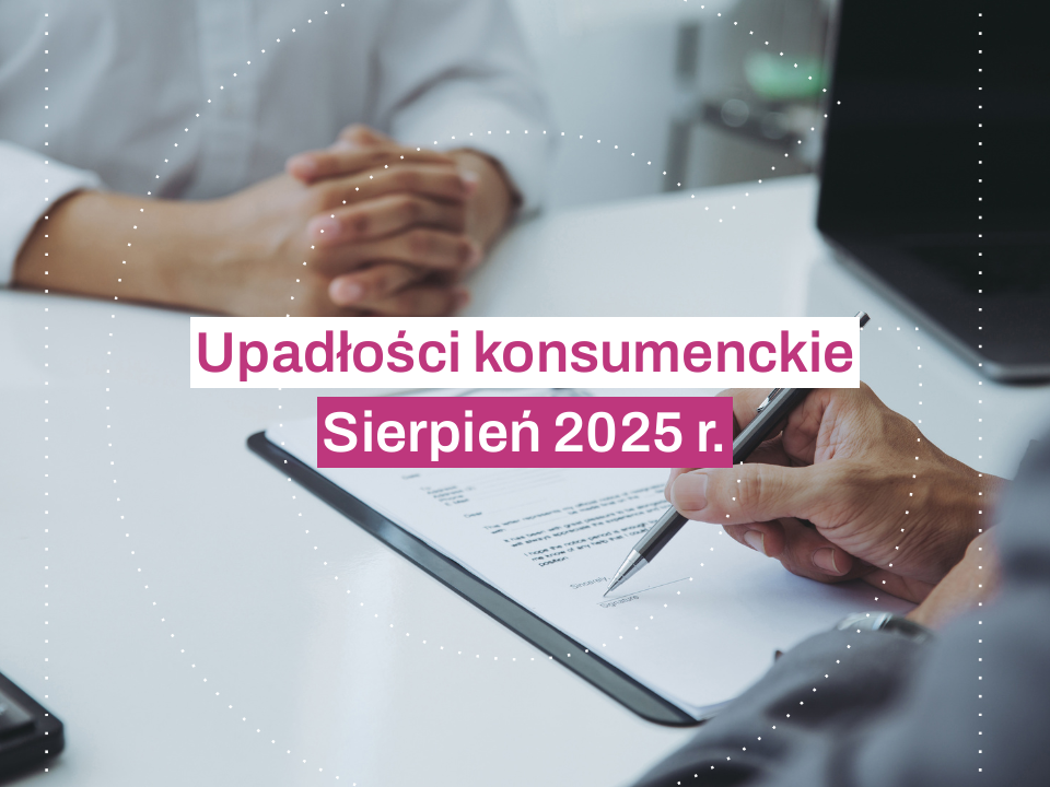 W sierpniu 2025 r. ogłoszono 1 718 upadłości konsumenckich i złożono 2 349 wnioski o ogłoszenie upadłości konsumenckiej.
