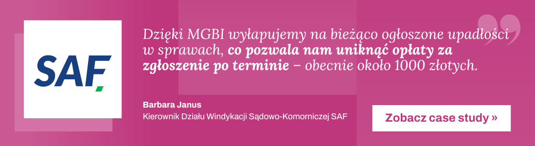 - a także listy firm windykacyjnych lub zajmujących się zarządzaniem należnościami będących członkami najważniejszych organizacji branżowych (np. Związek Przedsiębiorstw Finansowych, Polski Związek Zarządzania Wierzytelnościami).