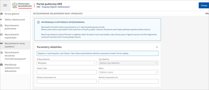 KRZ jest miejscem, w którym syndycy zamieszczają informacje o składnikach masy upadłości.