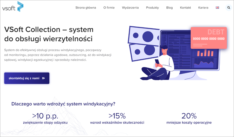 VSoft został stworzony z myślą o firmach, w których windykacja należności jest głównym polem działalności.